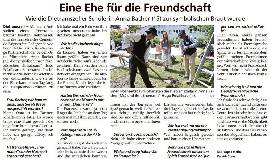beendet. Die Verbundenheit zwischen Baignes Ste Radegonde und Dietramszell ist ein lebendiges